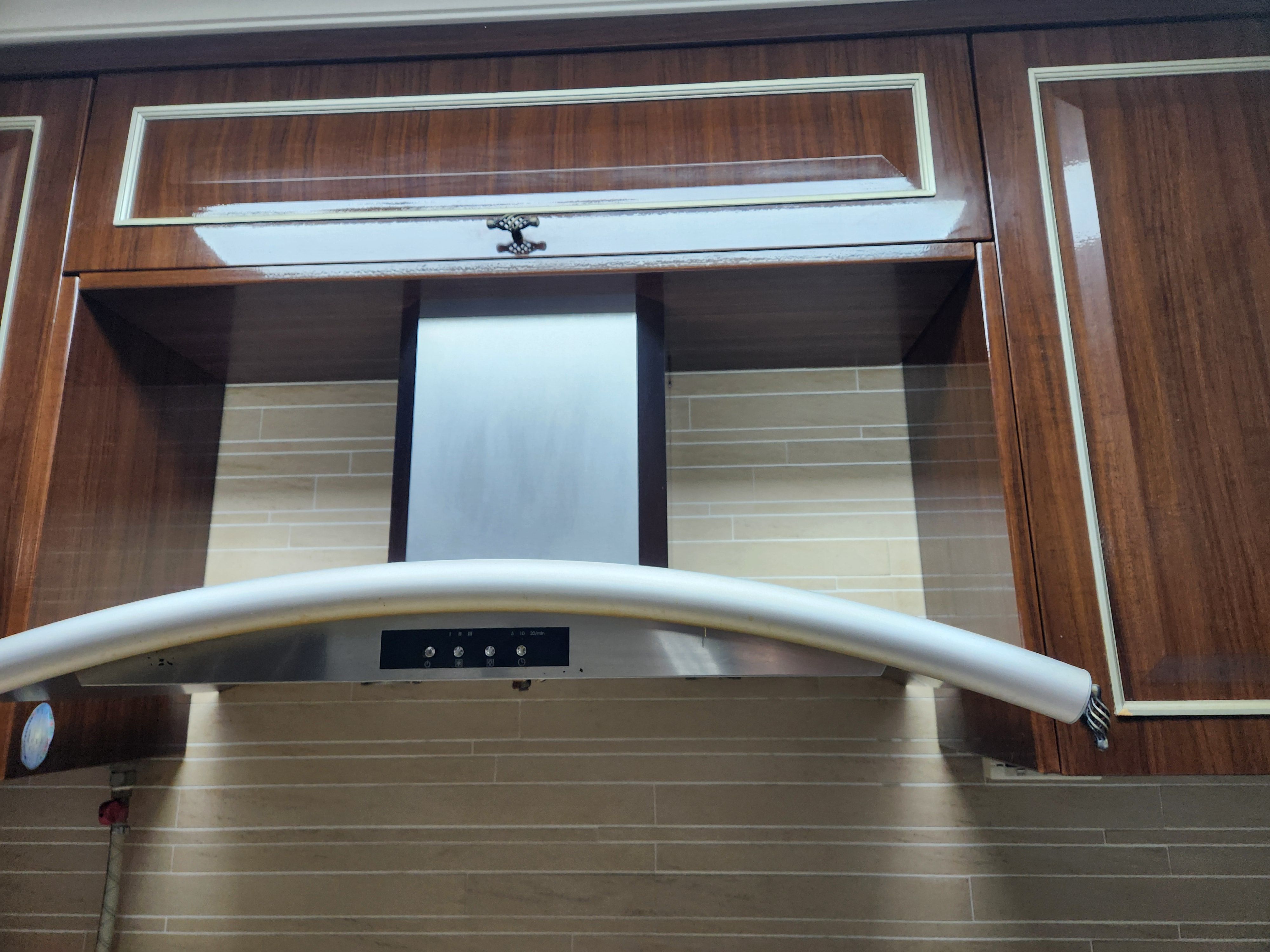 오늘 방문한 고객님 댁은 주방 인테리어에 꽤 신경을 쓴 듯한 구조였는데, 주방의 개방감을 위해 상부장을 꽉 채우지 않고 침니형 후드에 여백을 두고 설치해 둔 멋스러운 공간이었습니다.