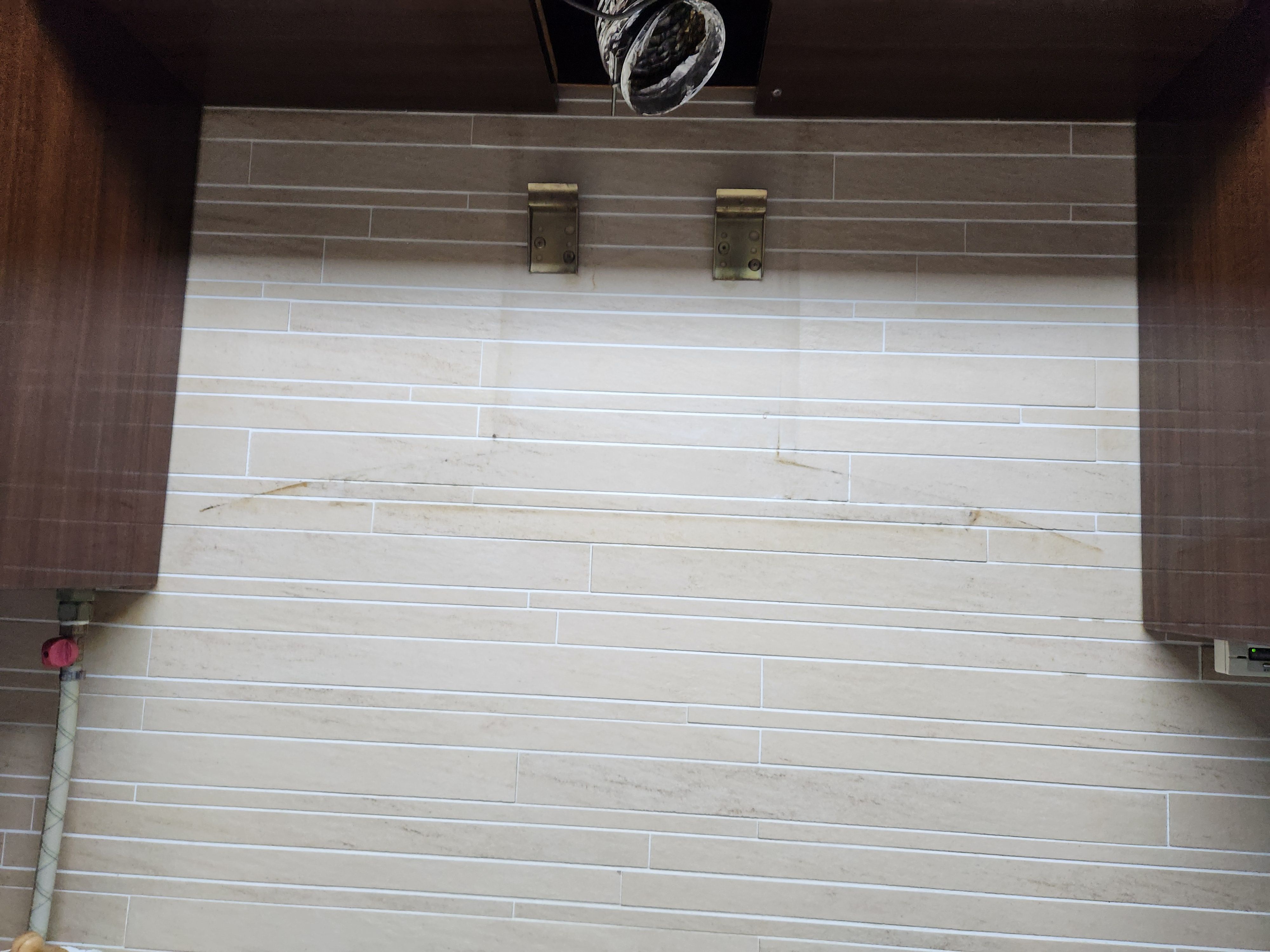 벽면의 타일 상태가 좋지 않거나 콘크리트 벽이 부실하면 후드가 앞으로 쏟아질 위험이 있기에, 지지대를 설치할 때 그 어느 때보다 신중해야 합니다.