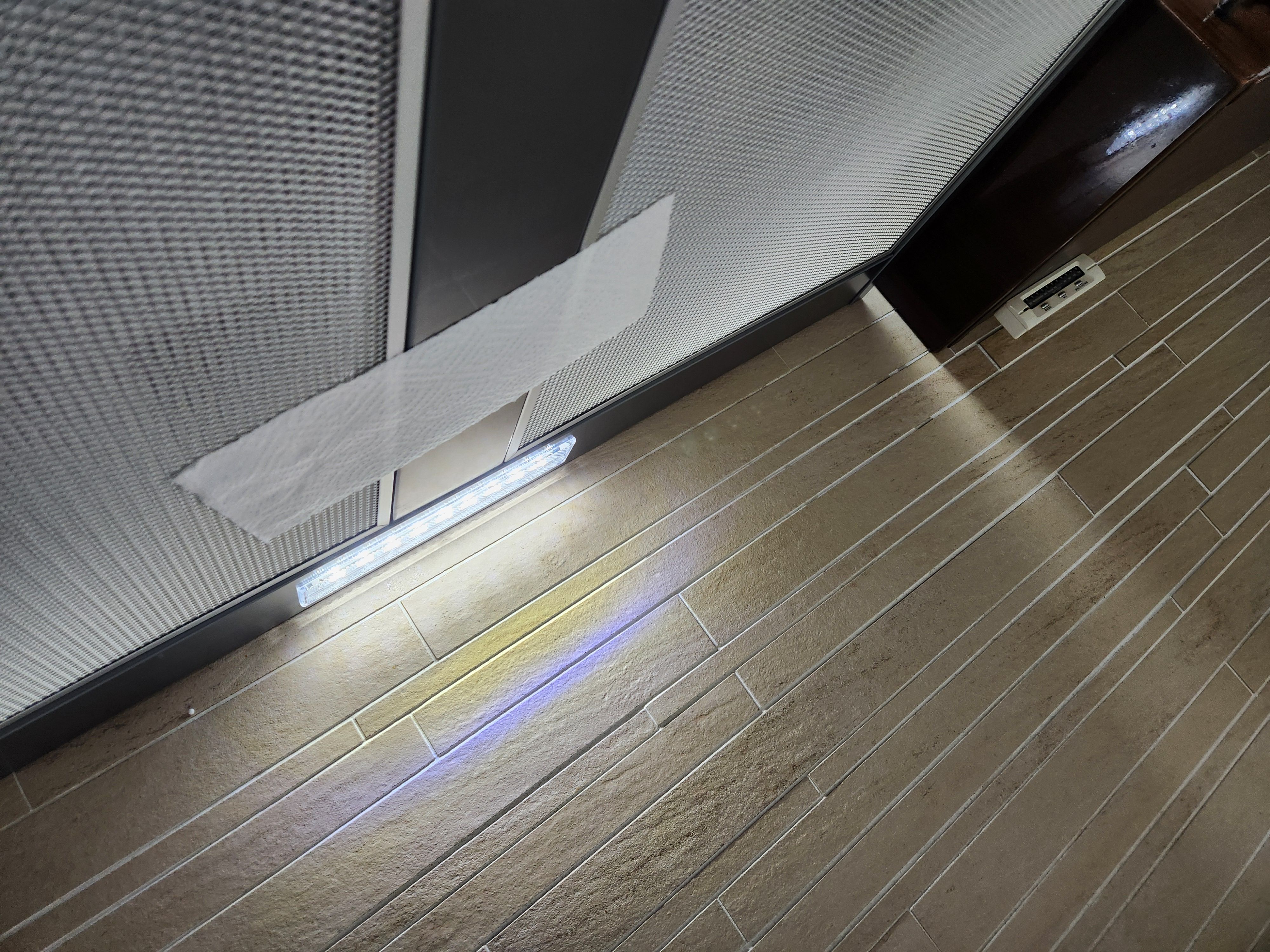 키친타올 한 장을 필터에 갖다 대니, '척' 하고 달라붙어 떨어질 줄 모릅니다. 양옆 지지대 없이 벽면 고정만으로 시공했지만, 흔들림이나 유격 없이 아주 견고하게 설치되었습니다.